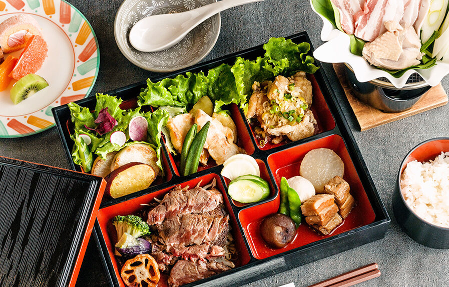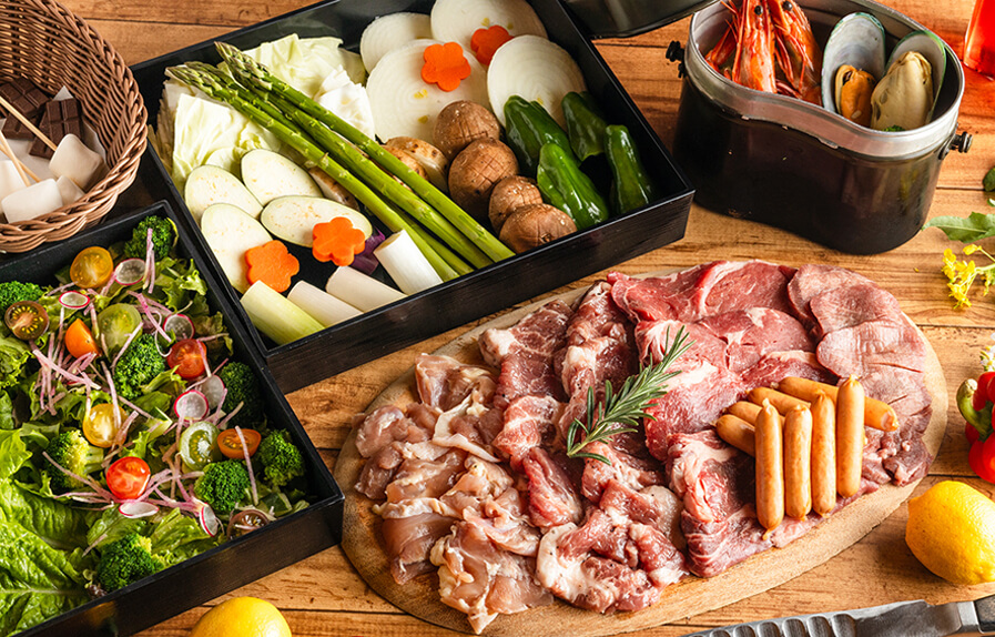 FOOD 食事 ヘレナ国際ヴィラ > 食事 季節の味を楽しむ 旅に彩りを添えるお食事のおもてなし季節を堪能できる食材でご提供 地元の生産者と共に地産地消に取り組み、海のもの、山のもの問わず 季節ごとにおもてなしのお食事をご提供しております。バーベキュー、御膳料理の他に、お持込も対応しております。 バーベキュー 季節の御膳 朝食 オプション バーベキュー 【3月1日から11月30日まで】 バーベキュー 広大なロケーションを眺めながら、バーベキューはいかがですか? 食材から焼台まで当館がご用意いたします。お肉や飯ごうで炊く海鮮パエリアなどメニューも豊富です。 料金 【1人前】4,180円(税込)食材+レンタルセット込み 【食材内容】 ・牛ロース・牛タン・豚ロース・鶏もも(肉類合計約250g) ・ウインナー・野菜類・サラダ・海鮮パエリア・調味料 ・スモア(焼きマシュマロ・チョコレート・クラッカー) 【レンタルセット内容】バーベキュー用焼台・網・木炭・取り皿類 ※事前準備必須のため、要予約とさせて頂きます ※2人前からのご注文となります。予めご了承ください ※写真は4名分です。 プレミアム バーベキュー 用意させていただくお肉は、福島が誇るブランド肉3種類です。 お肉にもこだわって、いつもより豪華なバーベキューを楽しみたいというお客様にオススメです。 料金 【1人前】6,380円(税込)食材+レンタルセット込み 【食材内容】 ・3種の福島産ブランド肉<福島牛(A3ランク)・麓山高原豚(ハヤマコウゲントン)・伊達鶏(ダテドリ)> ・ウインナー・野菜類・サラダ・海鮮パエリア・調味料 ・スモア(焼きマシュマロ・チョコレート・クラッカー) 【レンタルセット内容】バーベキュー用焼台・網・木炭・取り皿類 ※事前準備必須のため、要予約とさせて頂きます ※2人前からのご注文となります。予めご了承ください 【3月1日から11月30日まで】 巨大なお肉!トマホークステーキ 非日常のバーベキュー体験をさらに特別なものにしてくれるメニューです! アニメに出てくるような骨付きの巨大なお肉の塊は味わいも格別。 じっくり焼き上げたら、みんなでシェアして盛り上がりましょう!! 記念撮影もお忘れなく。 料金 【1ブロック(1kg)】13,200円(税込)食材+レンタルセット込み ※4〜5名分相当 【食材内容】 ・トマホークステーキ 1kg ・ローズマリーといろどり野菜・調味料セット(ハーブソルトほか) 【レンタルセット内容】専用ナイフ&フォーク・取り皿類 ※バーベキューをご予約いただいている方向けのオプションとなります。単品でのご注文不可。 ※トマホークステーキはレストランスタッフがお運びします。ご予約時に希望のお時間をお申し付けくださいませ。(~19:00まで) ※仕入れ状況などにより若干内容が変わる場合もございます。 【3月1日から11月30日まで】 お子様 バーベキューセット お子様にもバーベキューをお楽しみいただけるよう、美味しさと食べやすさにこだわりました。 お野菜は蒸した状態になっているため、少しあぶってすぐお召しあがりいただけます。 料金 【1人前】1,650円(税込)食材+レンタルセット込み 【食材内容】 ・カレークリームソースのハンバーグ(焼き台で温めてお召し上がりください) ・蒸し野菜 ・串焼き(ソーセージ、かまぼこ) ・焼きおにぎり(醤油、味噌各1個) ・スモア(焼きマシュマロ・チョコレート・クラッカー) 【レンタルセット内容】バーベキュー用焼台・網・木炭・取り皿類 ※バーベキューをご予約いただいている方向けのオプションとなります。単品でのご注文不可。 ※小学生未満のお子様限定になります。 ※仕入れ状況などにより若干内容が変わる場合もございます。 御膳 【通年】 お肉メインの季節の特製御膳セット松籟膳(しょうらいぜん) お肉メインの特製和洋食御膳、『松籟膳(しょうらいぜん)』のご案内です。 料金 【1人前】4,180円(税込) 【お品書き】ステーキ ・角煮入り煮もの ・蒸し鶏 ・油淋鶏 ・焼き野菜 ・ご飯 ・デザート・季節の汁物 ※4月-10月は「冷しゃぶそば」、11月-3月は「常夜鍋」のご提供となります。 ※メニューの内容は予告なく変更となる場合がございます。 ※事前準備必須のため、3 日前までの要予約とさせていただきます。 【通年】 お魚がメインの季節の特製御膳セット遊舟膳(ゆうしゅうぜん) お魚メインの特製和洋食御膳、『遊舟膳(ゆうしゅうぜん)』のご案内です。 料金 【1人前】4,180円(税込) 【お品書き】焼き魚 ・煮魚入り煮もの ・メヒカリの唐揚げ・マリネ ・甘酢あん ・焼き野菜 ・ご飯 ・デザート・季節の汁物 ※4月-10月は「海老天そば」、11月-3月は「常夜鍋」のご提供となります。 ※メニューの内容は予告なく変更となる場合がございます。 ※事前準備必須のため、3 日前までの要予約とさせていただきます。 【通年】 お子様御膳 お子様好みのメニューを揃えた、特別な御膳です。 料金 【1人前】1,980円(税込) 【お品書き】チキンライス・スクランブルエッグ・スパゲティ・ミニハンバーグ・エビフライ・チキ